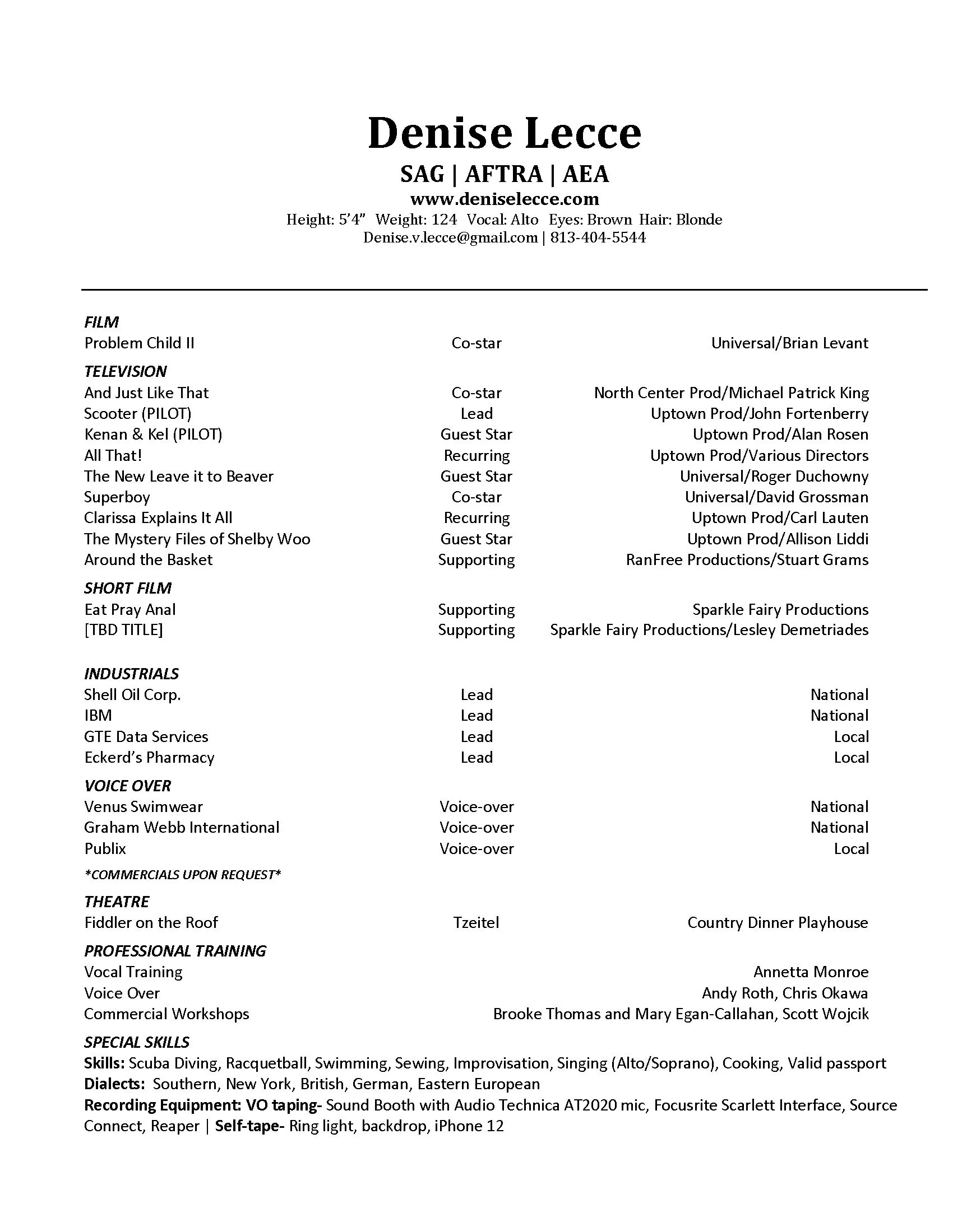 Actress | Voice Over | Singer & SAG-AFTRA | AEA